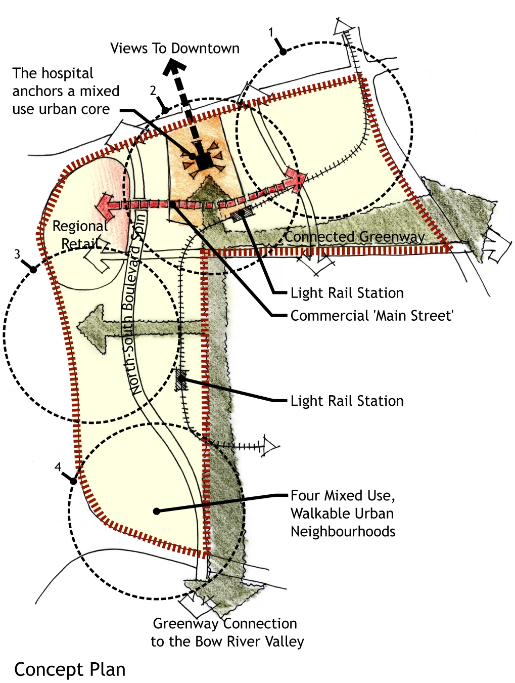 Size/Description: 347 ac. Mixed-Use Town Centre, Hospital Facility, and TOD